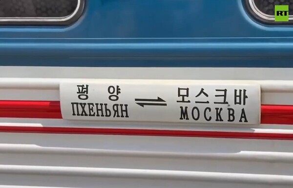 ![]() 북한 국장이 그려진 평양~모스크바 직통열차. 사진=RT/X |