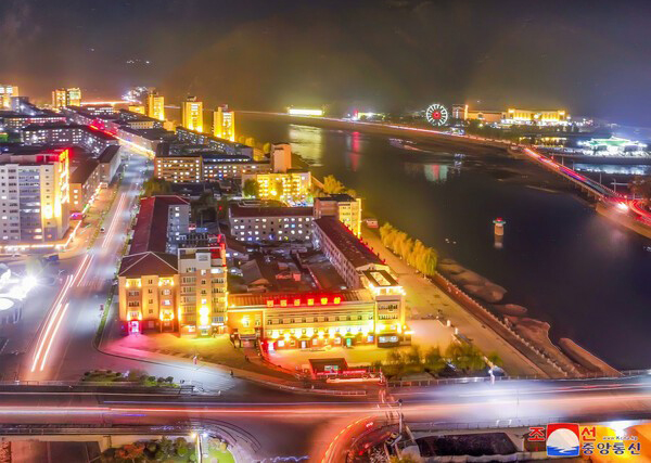 ![]() 2024년 북한 강계시의 야경. 북한 자강도에서 강계시의 불장식(조명)을 보다 특색 있게 해 도시의 면모를 일신시켰다고 조선중앙통신이 보도했다. 사진=조선중앙통신/연합뉴스 |