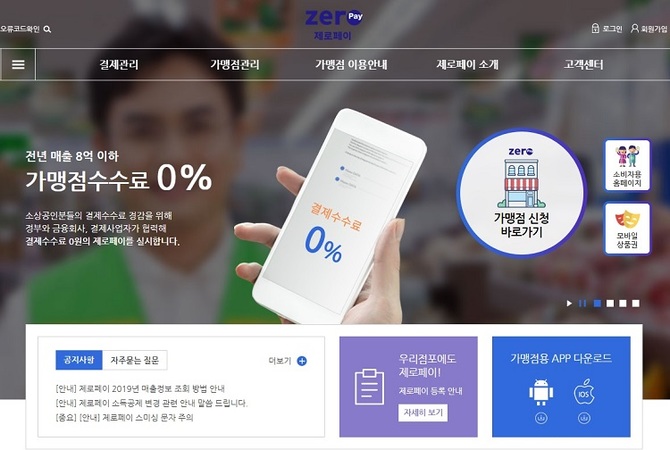 스마트폰 또는 PC를 이용해 제로페이 홈페이지에 가맹신청이 가능하다. 모바일·온라인 신청을 하면 24시간 내 가맹 승인되고 영업일 기준 5일 내 제로페이 키트가 발송되는 방식이다.