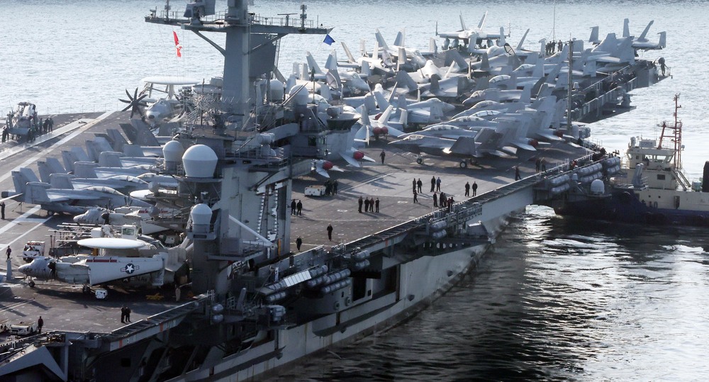 ![]() 사진은 미국 해군 7함대 소속 핵추진 항공모함 '조지 워싱턴함(CVN-73). 사진=뉴시스 |